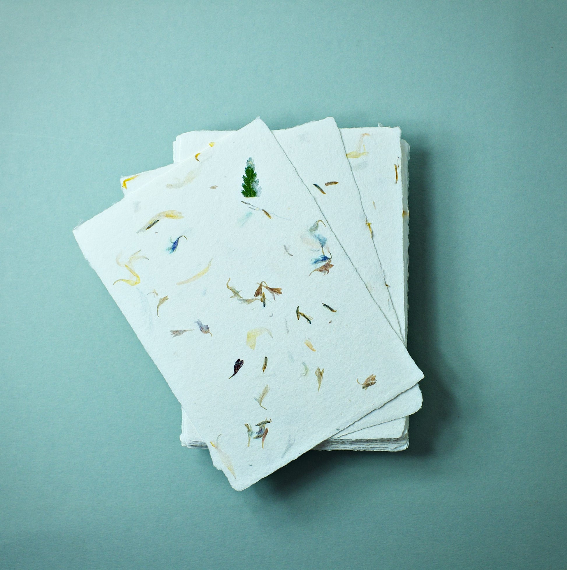 Hergestellt aus 100 % säurefreien Baumwoll-Linters mit Inklusionen aus Blüten und Gräsern